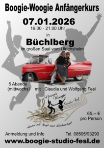Bei den Einsteigerkursen sind keinerlei Vorkenntnisse nötig. In 5 Abenden a` 2 Std. bringen wir dir die Grundschritte des Boogie-Woogie, sowie verschiedene Tanzfiguren bei. Die Figuren werden flüssig zusammengehängt und die Technik wird ständig verbessert. Natürlich beginnen wir mit langsamer aber mitreißenden Rock`n Roll Musik und steigern dann immer wieder das Tempo.